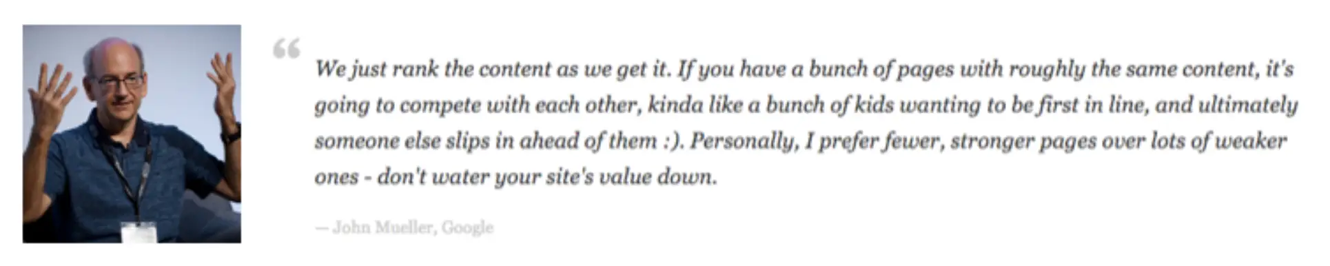 Googleの検索エバンジェリストのジョン・ミュラーの発言がカニバリの影響を抽象的にではあるものの、イメージしやすく表現していました。