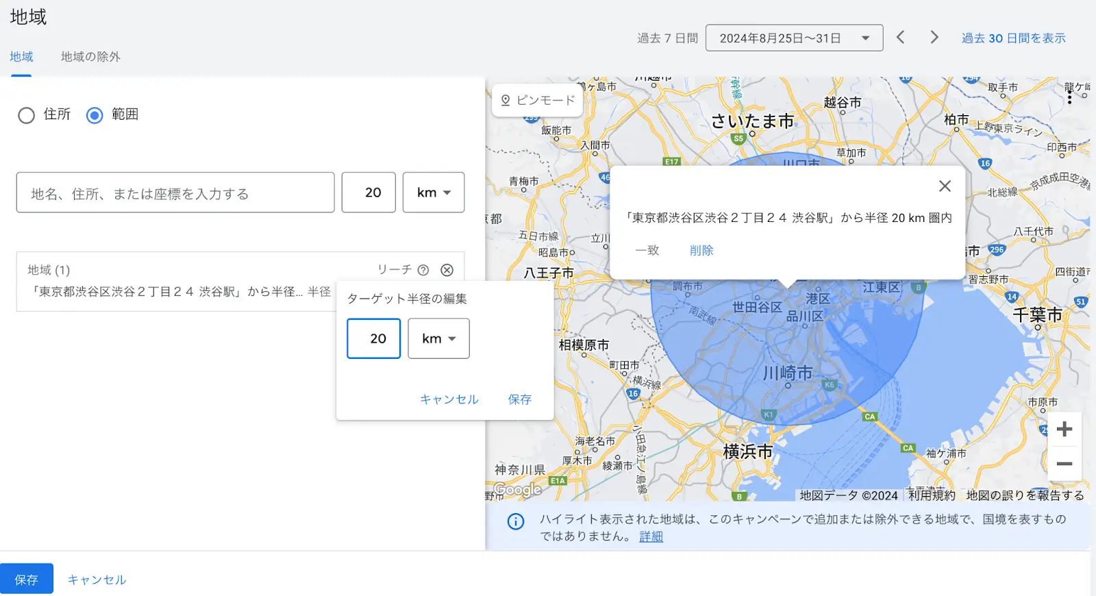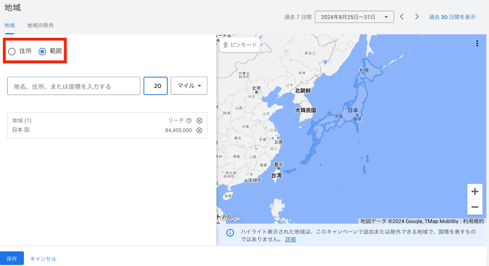他県のユーザーを取りこぼさないためにも、範囲設定を活用して広告を届けられるようにしましょう。