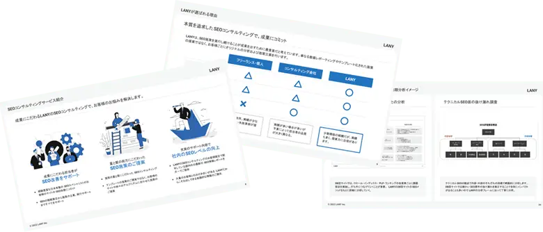 - Feature孤独にしない伴走パートナー私たちは単なるコンサルではありません。SEO担当者の孤独に寄り添い、課題や目標を共有する「真のパートナー」として、圧倒的な伴走力で貴社チームの一員のように支援します。